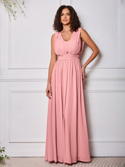 • A versatile bridesmaid dress with a flowy design, featuring two extra-long front streamers attached at the waist. These streamers can be styled in various ways, offering multiple looks for the perfect fit and elegance on the big day.