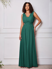 • A versatile bridesmaid dress with a flowy design, featuring two extra-long front streamers attached at the waist. These streamers can be styled in various ways, offering multiple looks for the perfect fit and elegance on the big day.