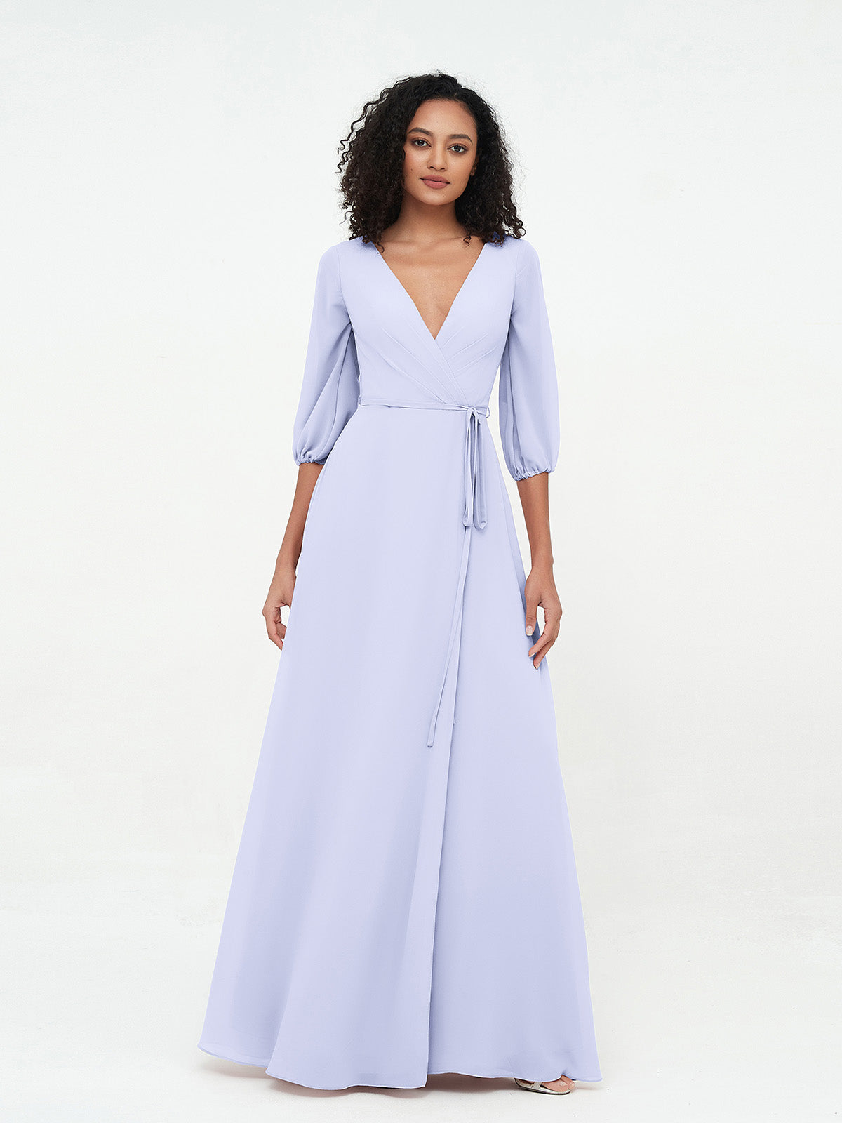 Deep V-neck 1/2 Sleeves Chiffon Max Dresses-Lavender