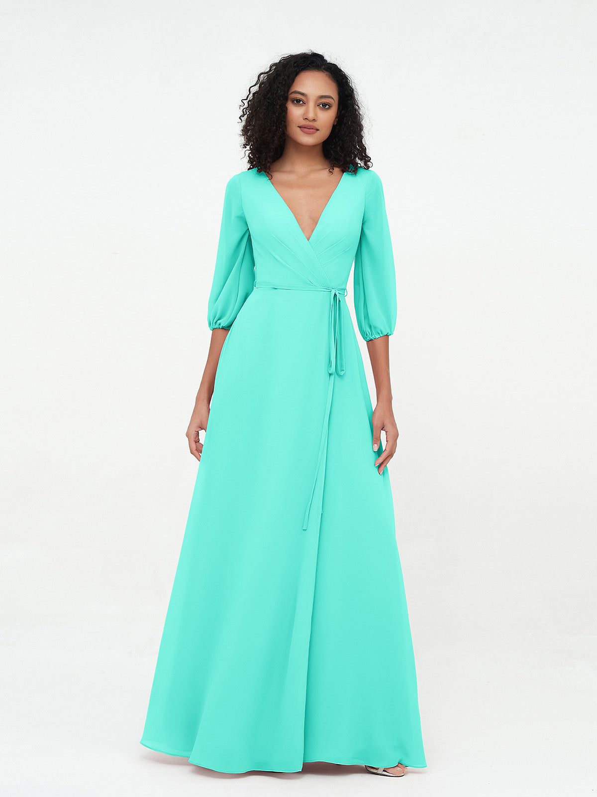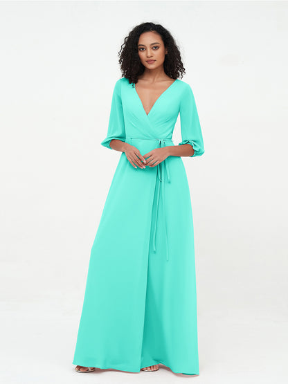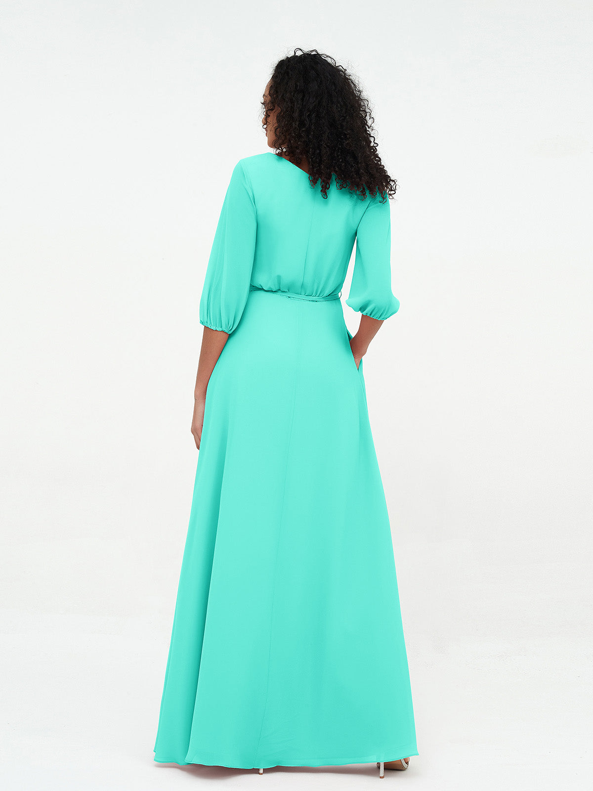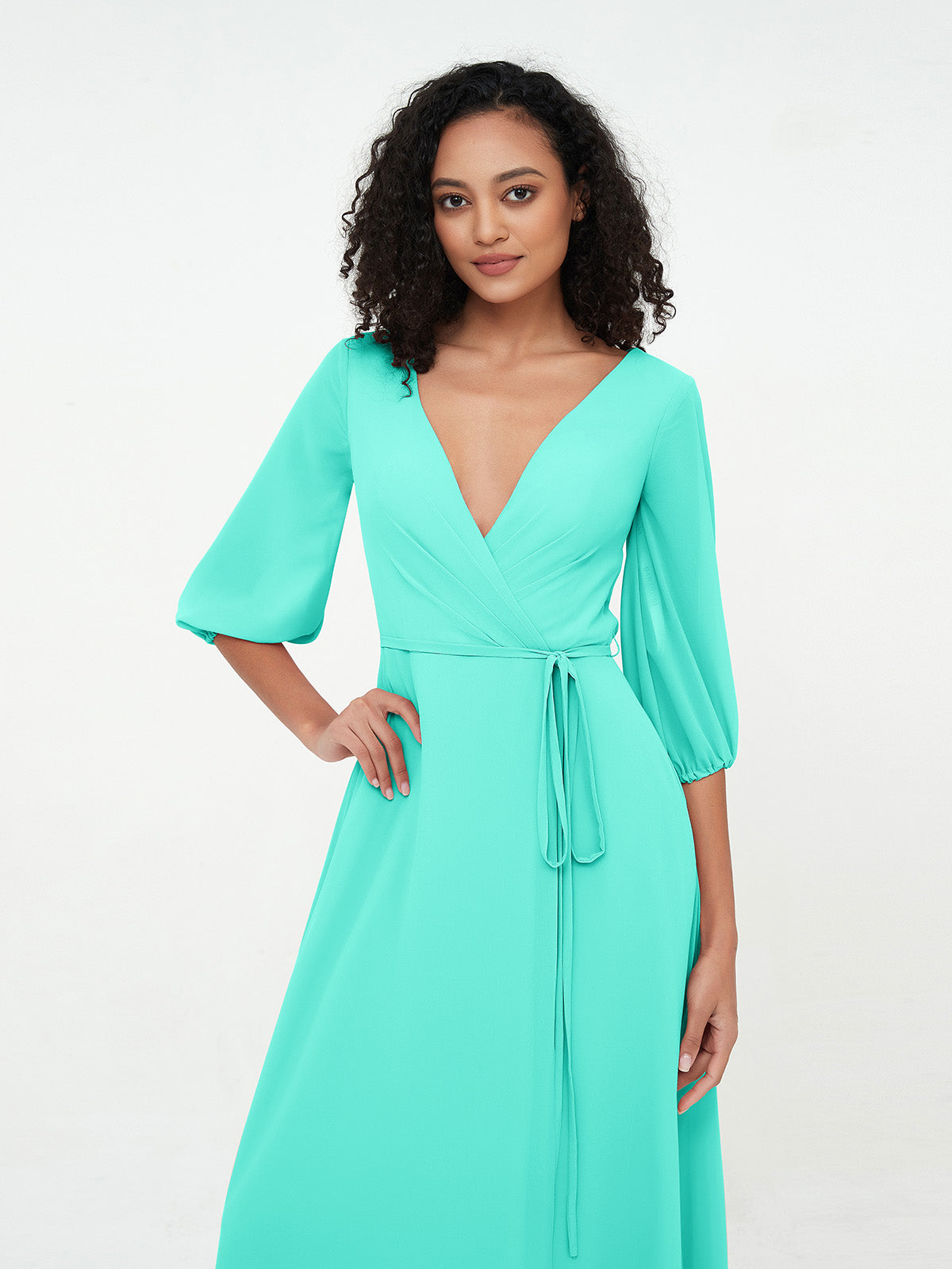 Deep V-neck 1/2 Sleeves Chiffon Max Dresses-Spa