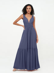 Deep-V Neck Chiffon Tiered Skirt Boho Dresses-Stormy Plus Size