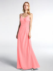 Double Straps Cross Back Chiffon Maxi Dress-Flamingo