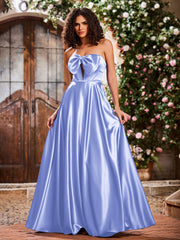 Elegant A-Line Bow Corset Strapless Floor-Length Prom Dresses Lavender
