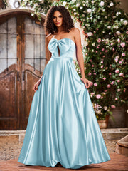 Elegant A-Line Bow Corset Strapless Floor-Length Prom Dresses Mist