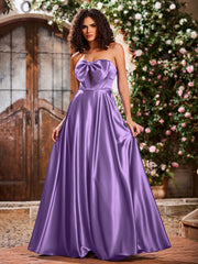 Elegant A-Line Bow Corset Strapless Floor-Length Prom Dresses Tahiti