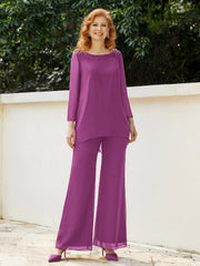 Elegant Chiffon Pant Suit with Long Sleeves-Orchid