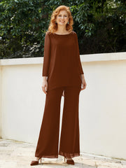Elegant Chiffon Pant Suit with Long Sleeves-Terracotta
