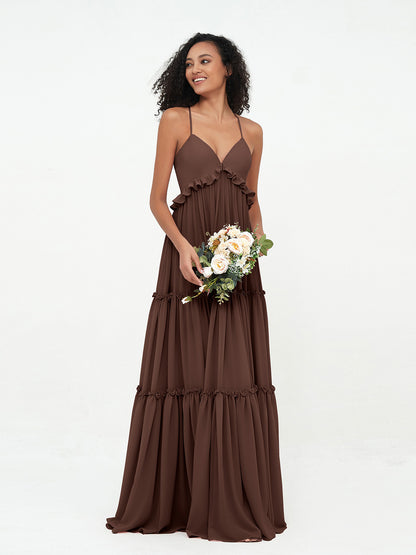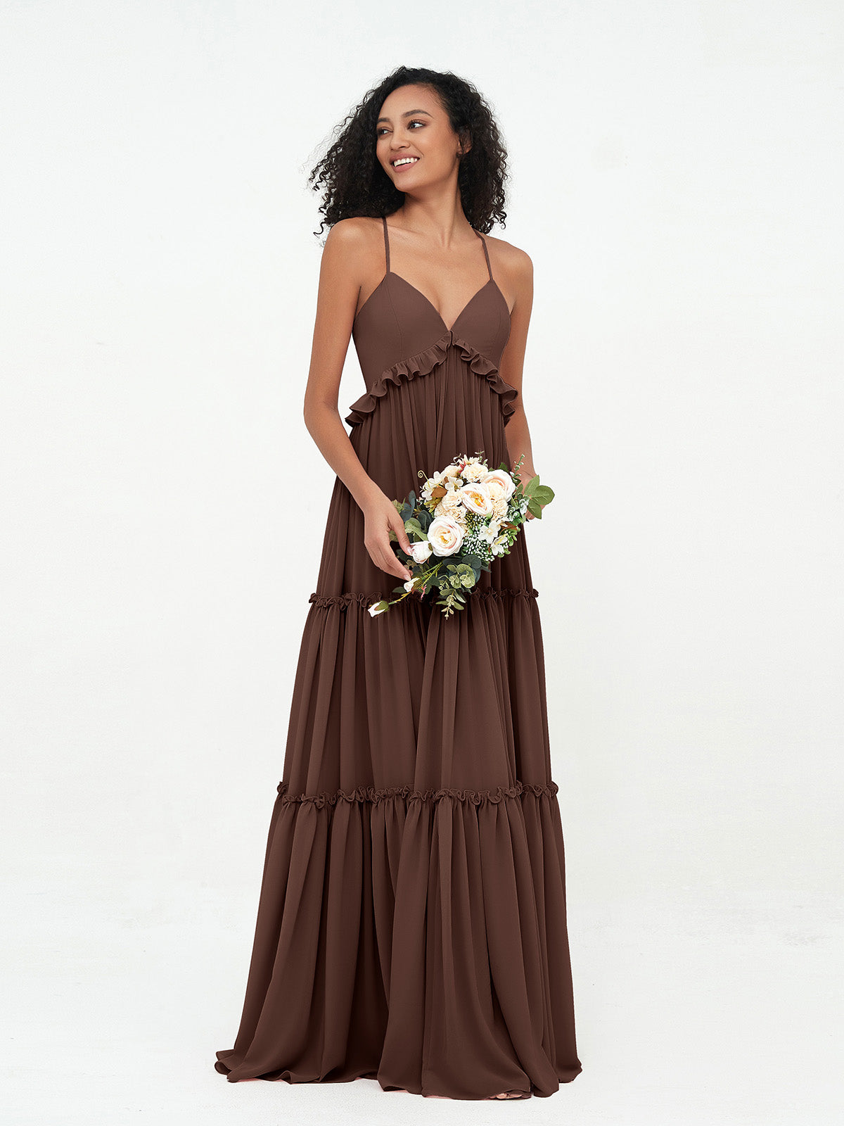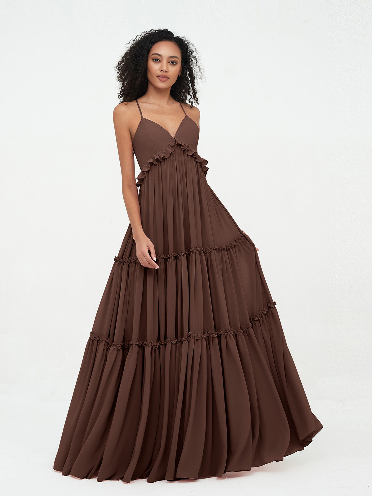 Empire Chiffon Tiered Skirt Max Bohemian Dresses-Chocolate