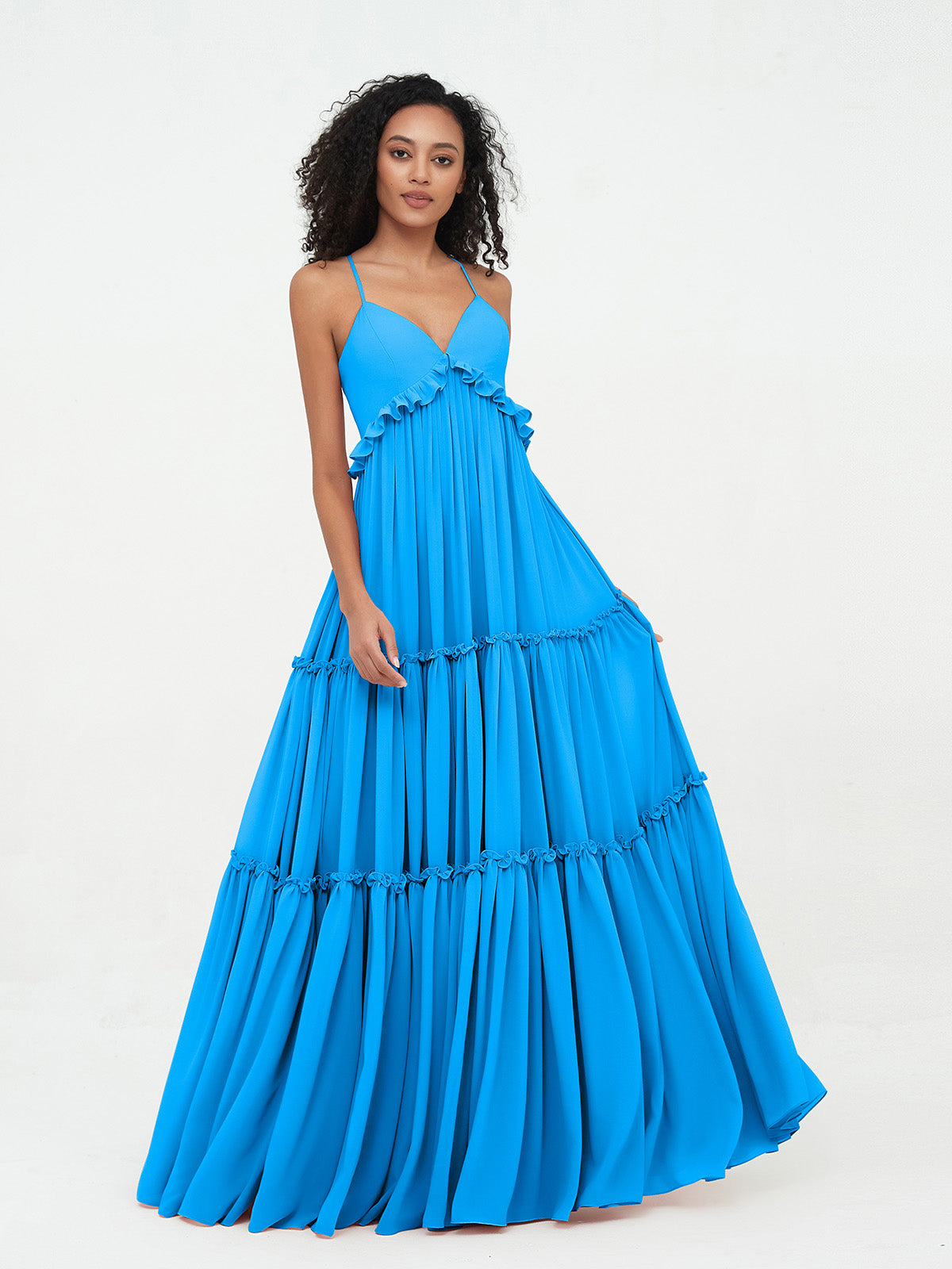 Empire Chiffon Tiered Skirt Max Bohemian Dresses-Ocean Blue
