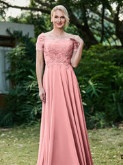 Flower Appliqued Chiffon Dress with Pleated Flamingo