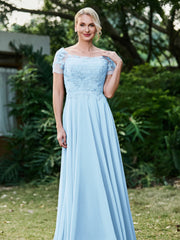 Flower Appliqued Chiffon Dress with Pleated Sky Blue