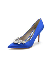 Flower Shape Rhinestone Satin Stiletto Pumps