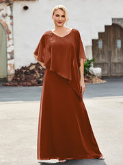 Flutter Sleeves Sheath Dress with Beaded Terracotta