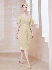 Flutter Sleeves V-neck Sequins Applique Decor Dress Champagne