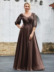 Half Sleeves Lace Top Pleated Dress Chocolate