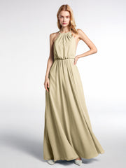 Halter Neck Low Back Chiffon Maxi Sexy Dress-Champagne