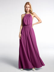 Halter Neck Low Back Chiffon Maxi Sexy Dress-Orchid