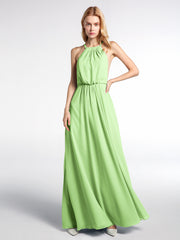 Halter Neck Low Back Chiffon Maxi Sexy Dress-Sage