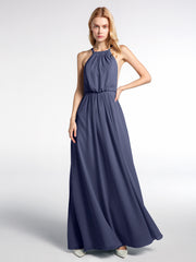Halter Neck Low Back Chiffon Maxi Sexy Dress-Stormy