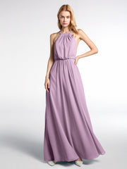 Halter Neck Low Back Chiffon Maxi Sexy Dress-Wisteria