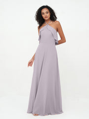 Halter Strap Chiffon Long Bridesmaid Dresses Dusk