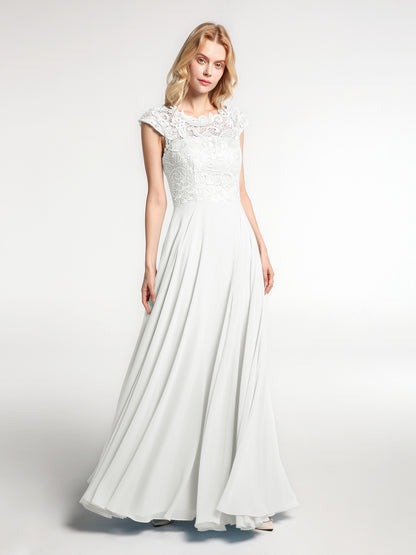 Illusion Wrap Neck Lace and Chiffon Maxi Dress-Ivory