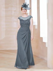 Illusion Neck Appliqued Dress With Slit Slate Blue