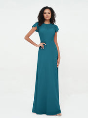 Illusion Neckline Chiffon Dresses with Cap Sleeves-Ink Blue