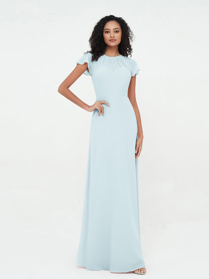 • Mag is the latest short-sleeved chiffon long dress with a simple shape.