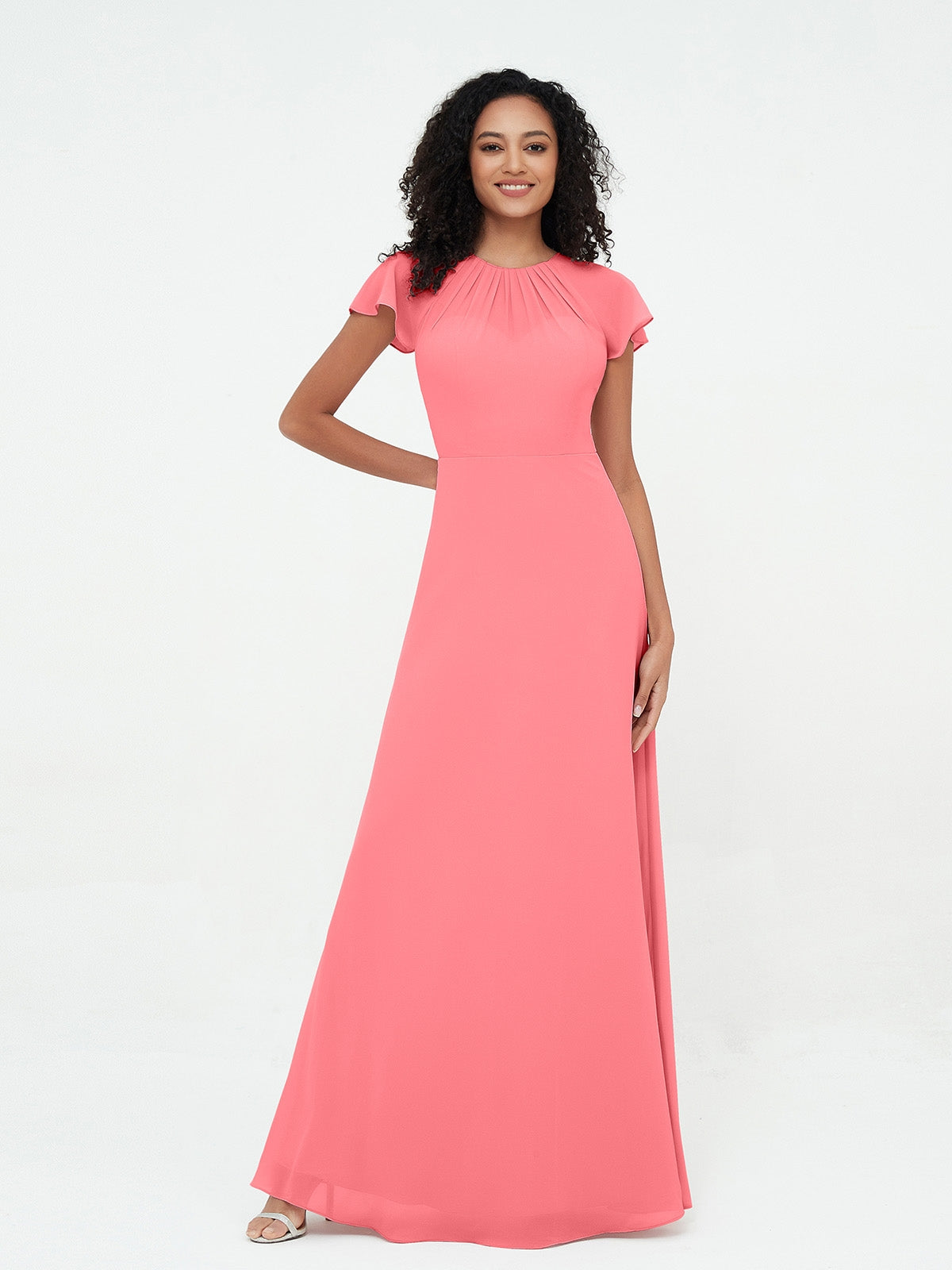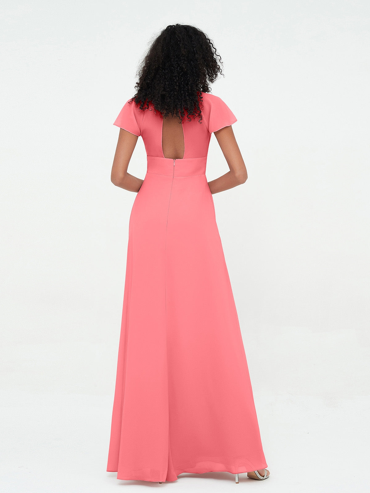Illusion Neckline Chiffon Dresses with Cap Sleeves-Watermelon Plus Size