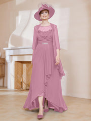Illusion Neckline Ruffles Dress With Jacket Flamingo