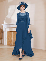 Illusion Neckline Ruffles Dress With Jacket Ink Blue