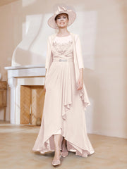 Illusion Neckline Ruffles Dress With Jacket Peach