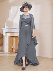 Illusion Neckline Ruffles Dress With Jacket Steel Grey