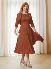 Illusion Neckline Short Sleeves Dress with Jacket Rust