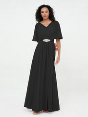 • An illusion v-neckline combined with an A-Line silhouette is this romantic chiffon dress Serenity.