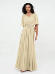 • An illusion v-neckline combined with an A-Line silhouette is this romantic chiffon dress Serenity.
