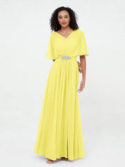 Illusion Sweetheart Neck Chiffon Max Dresses-Lemon