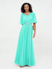 • An illusion v-neckline combined with an A-Line silhouette is this romantic chiffon dress Serenity.