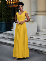 Lace and Chiffon Maxi Dress with Cap Sleeves-Marigold