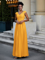 Lace and Chiffon Maxi Dress with Cap Sleeves-Tangerine