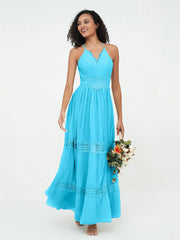 Lace and Chiffon Tiered Skirt Boho Dresses-Pool
