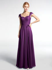 Lace Bodice Chiffon Skirt Dress with Cap Sleeves-Grape