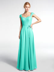 Lace Bodice Chiffon Skirt Dress with Cap Sleeves-Spa