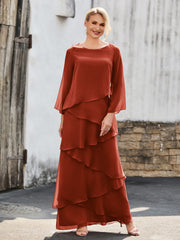 Long Sleeve Chiffon Dress with Cascading Ruffles Rust