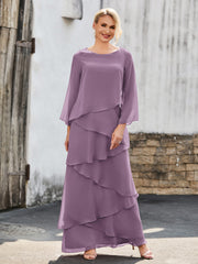 Long Sleeve Chiffon Dress with Cascading Ruffles Wisteria