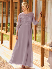 Long Sleeves Lace Top A-line Pleated Dress Dusk