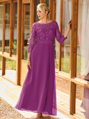 Long Sleeves Lace Top A-line Pleated Dress Orchid