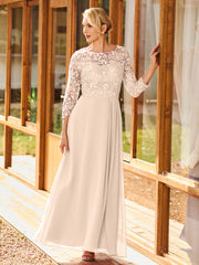 Long Sleeves Lace Top A-line Pleated Dress Peach