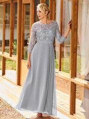 Long Sleeves Lace Top A-line Pleated Dress Silver